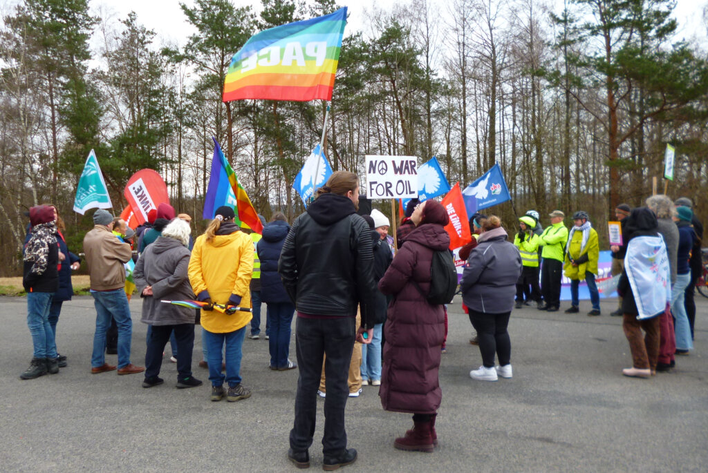 Verschiedene Gruppierungen, die sich für den Frieden einsetzen, haben kurzfristig anlässlich der kriegerischen Handlungen im Nahen Osten zu einer Kundgebung vor den Toren der Air Base Ramstein aufgerufen.