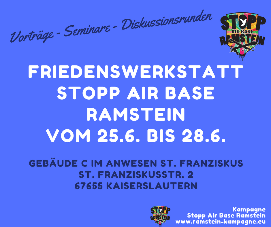 Als Höhepunkt der diesjährigen Proteste ist eine bunte und vielfältige Demonstration mit 4 Kundgebungen am Samstag, den 30.06.18 geplant. Die Auftaktkundgebungen finden ab 13 Uhr in Landstuhl an der Stadthalle